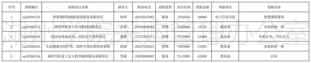 湖州学院2025年3月校内授权采购项目公示